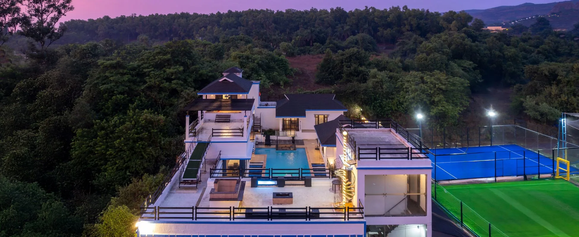 5 BHK villa with Private Cricket Turf & Private Paddle Court in Lonavala